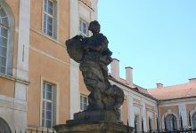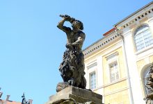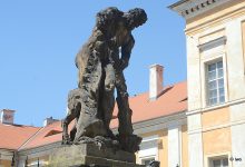 Socha Herkula se lvem na nádvoří zámku v Duchcově