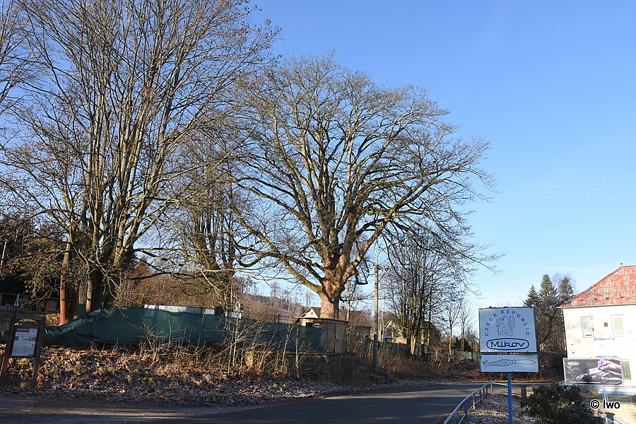 Ve svahu naproti areálu nožířské firmy Mikov v Mikulášovicích roste památný strom – javor klen.