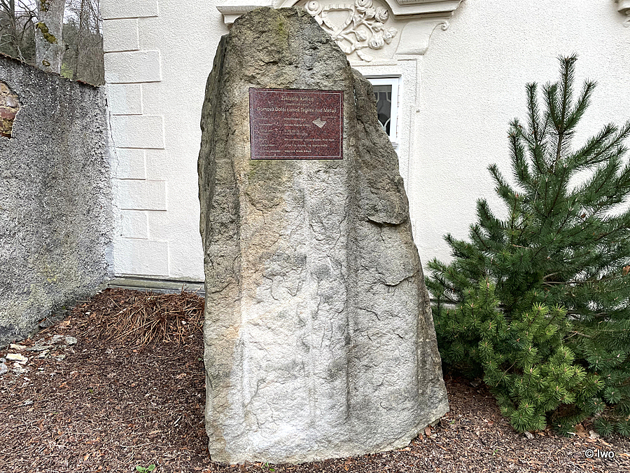 Před budovou Dolního zámku na náměstí Aloise Jiráska v Teplicích nad Metují stojí v místě, kde se napojuje ohradní zeď zámeckého parku, základní kámen stavebních úprav Domova Dolní zámek.