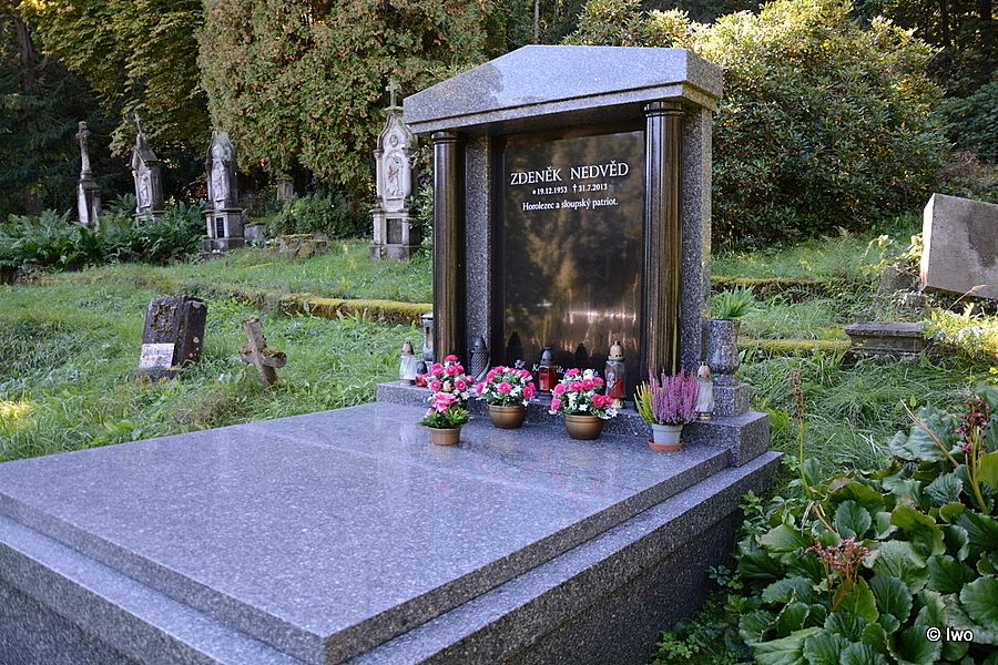 Vpravo od středu hřbitova se nachází hrob Zdeňka Nedvěda.