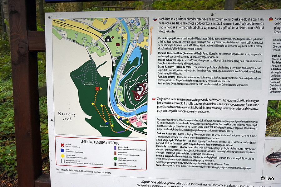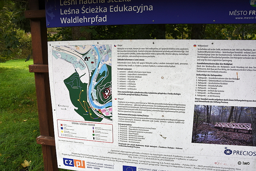 30.11.2017 – V areálu takzvaného Podzámčí vzniklo ve Frýdlantu další atraktivní místo pro trávení volného času. Jde o naučnou stezku v prostoru přírodní rezervace Křížový vrch, na které návštěvníci najdou informační tabule, odpočinková místa s vyhlídkou na hrad a zámek, povalový chodníček s přemostěním mokřad. Vznik stezky umožnil česko-polský projekt nazvaný „Společně objevujeme přírodu a historii na naučných stezkách Frýdlantu a Lubaně“.