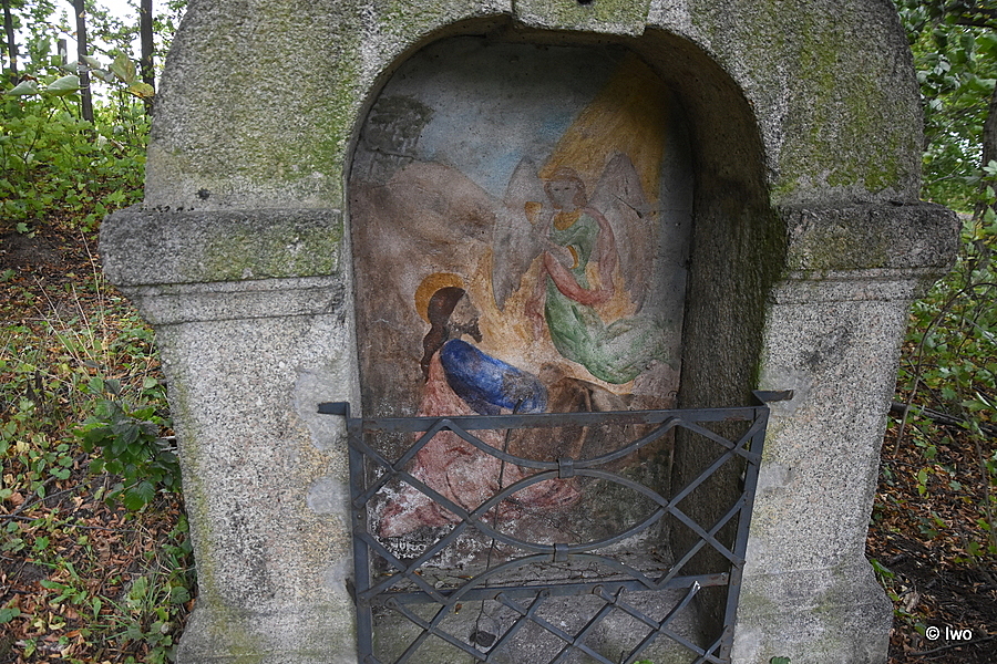 Na začátku křížové cesty na Křížovém vrchu ve Frýdlant stojí výklenková kaple s malovaným výjevem Krista v zahradě Getsemanské.