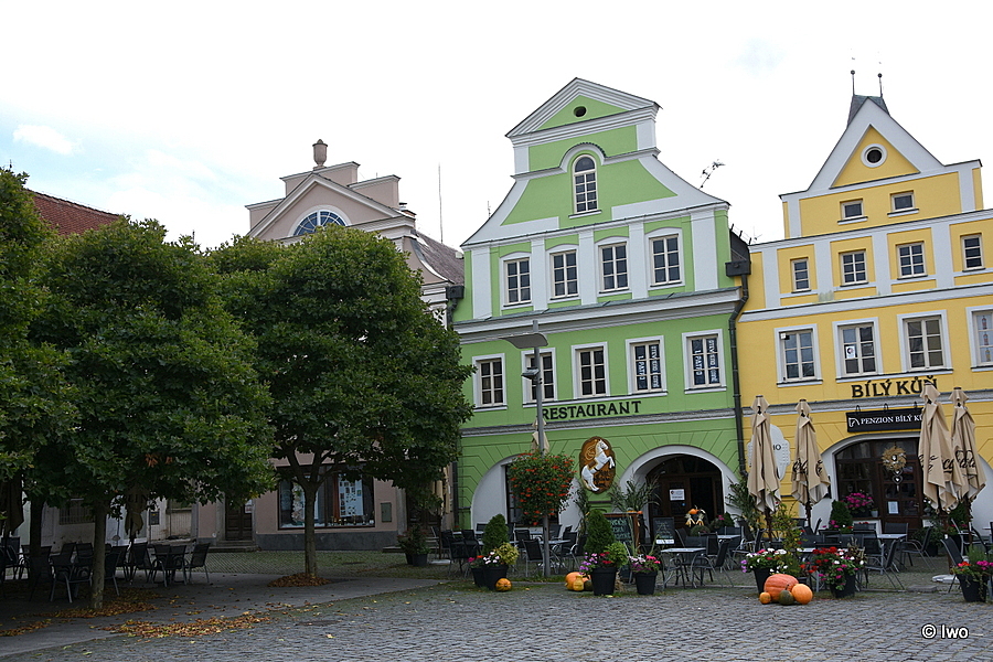 č.p. 93: Objekt je nejspíš renesančního původu (průčelní zeď včetně štítu) . Jednopatrový řadový dům, architektonicky i dispozičně spojený s vlevo stojícím objektem č.p. 92, na restauraci „ Bílý kůň“. Kordonová římsa nad přízemím s palmetovým dekorem probíhá přes obě průčelí domů. Hlavní průčelí je v patře čtyřosé, kolem oken šambrány. Průčelí ukončuje vysoký stupňovitý, čtyřosý štít, s horním trojúhelným dílem. V přízemí se nachází jedna lichá stlačená arkáda. Je nanejvýš pravděpodobné, že dům byl původně do náměstí otevřen loubím. Střecha objektu je sedlová, s hřebenem kolmým k náměstí. Objekt je úzký hloubkový, konstrukčně jednotraktový. Sklep v zadní přistavěné části je novodobý, původní nejspíš zasypán. Uvnitř novodobě dispozičně řešený.