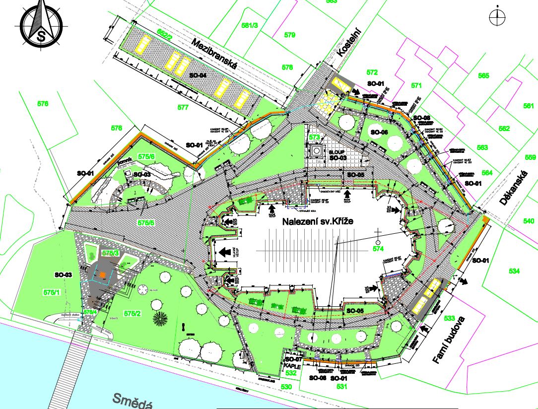 Revitalizace okolí kostela Nalezení sv. Kříže počítá také s plochou pro umísťování soch či jiných uměleckých děl a úpravou prostranství u Mariánského sloupu. „Studie počítá s tím, že kolem Mariánského sloupu už se nebude parkovat. Prostranství bude upraveno velkoformátovou žulovou dlažbou, do které bude zakomponováno stávající osvětlení sloupu. Parkování bude vyřešeno mimo areál kostela, za jeho ohradní zdí, a parkovací plocha bude řešena čedičovými kostkami. Jednotlivá stání pak budou vymezena žulovými obrubami. Parkovací stání je navrženo v ulici Mezibranská v části současné zahrady,“ vysvětluje vedoucí investičního oddělení Městského úřadu Frýdlant Dana Kiliánová.