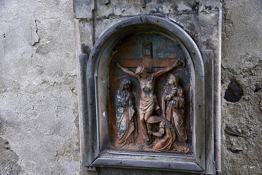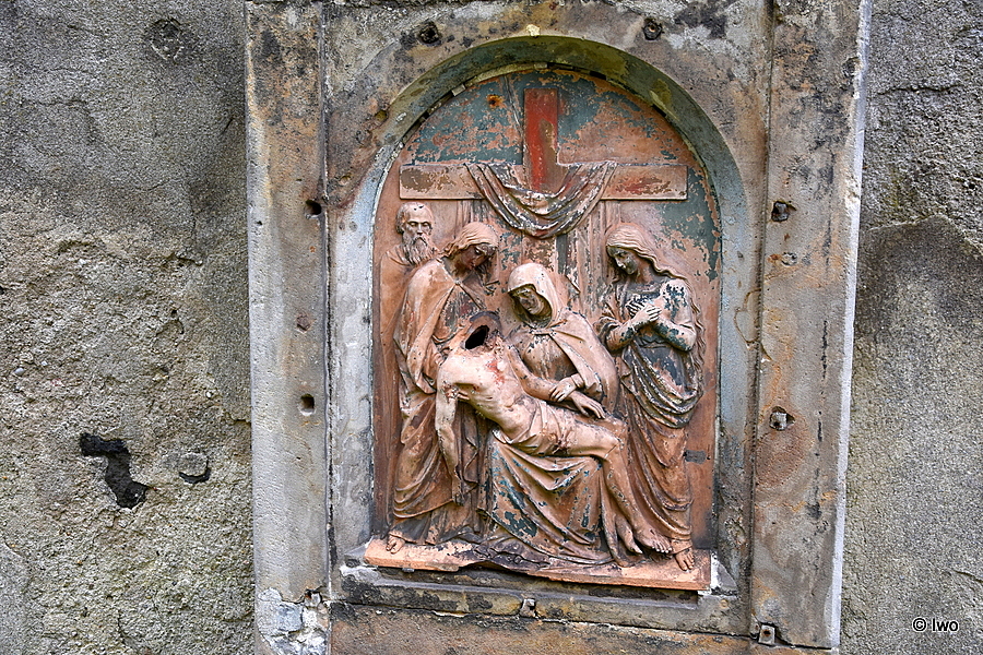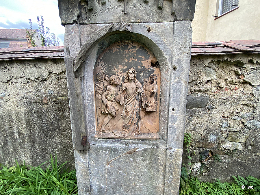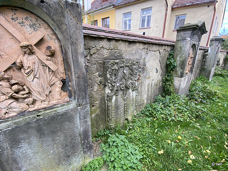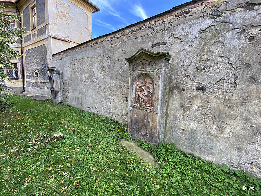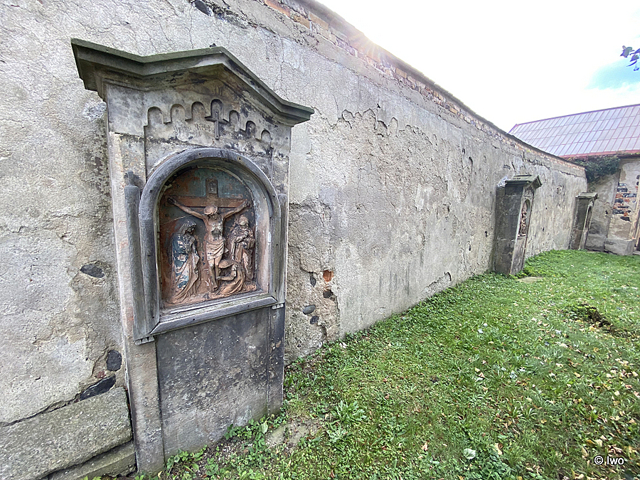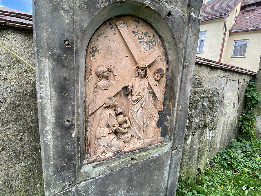 - Křížová cesta na fasádě kostela Nanebevzetí Panny Marie v Schirgiswalde