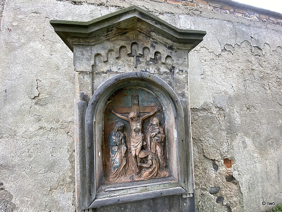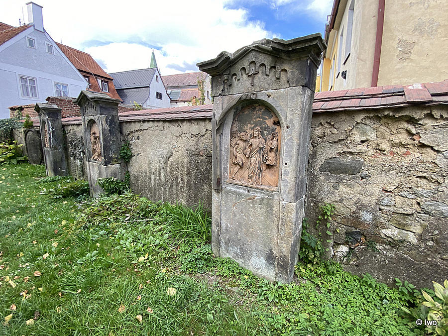Kolem kostela Nalezení svatého Kříže ve Frýdlantu se nachází zbytky výklenkové křížové cesty.