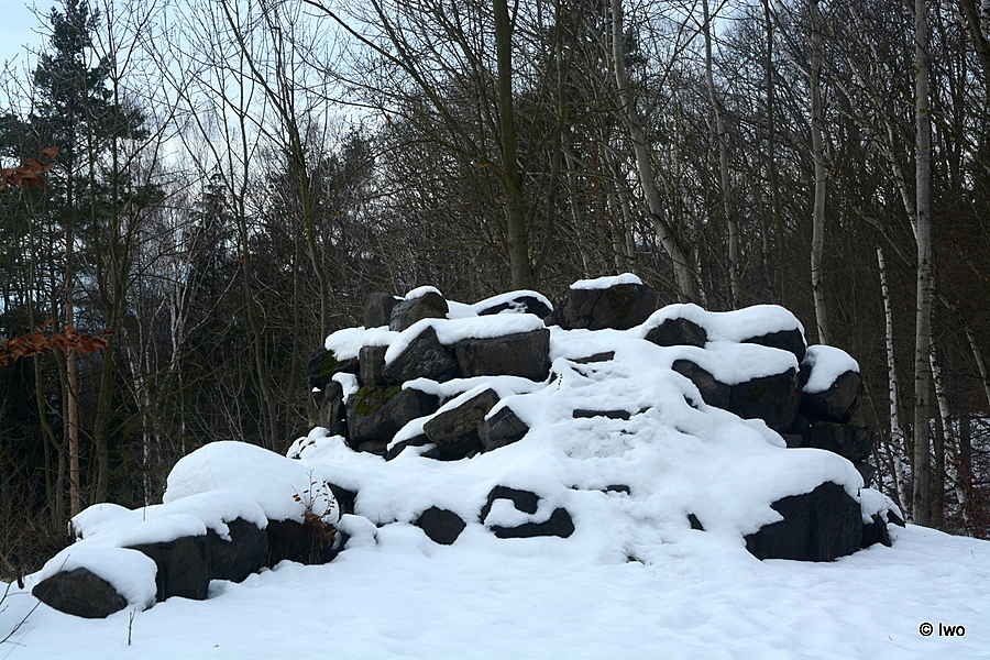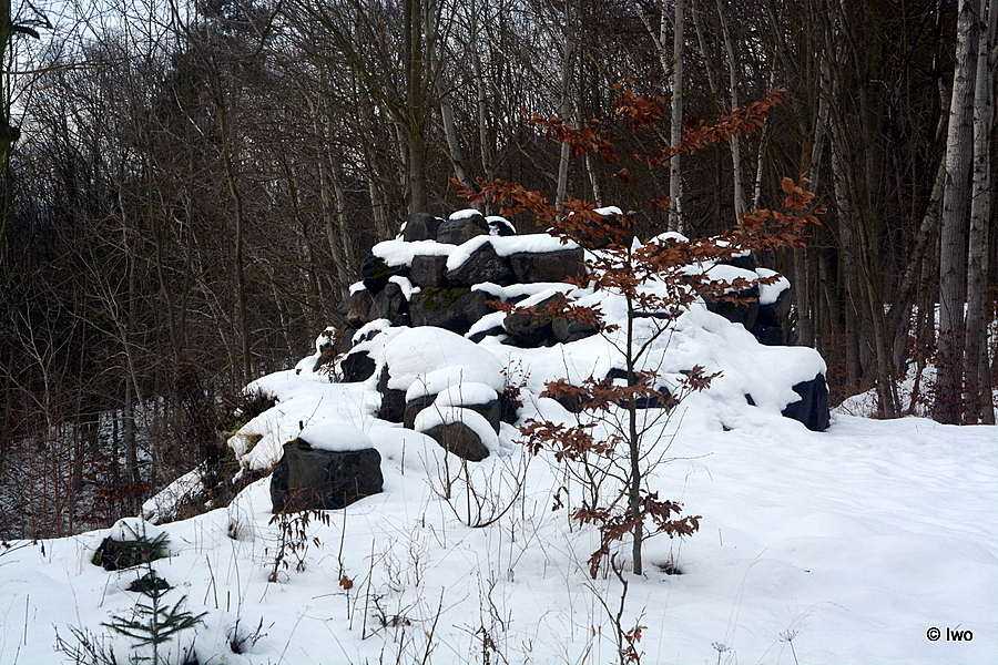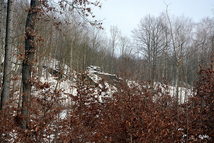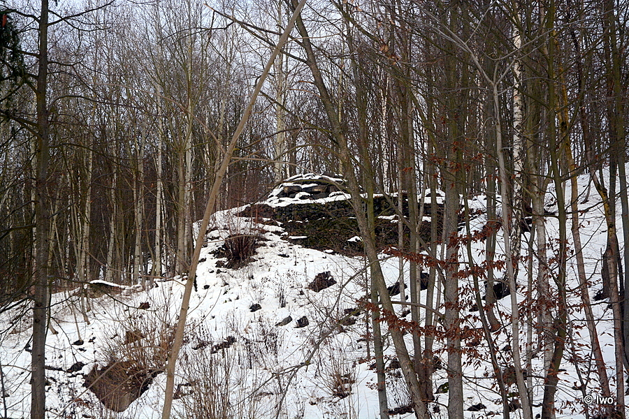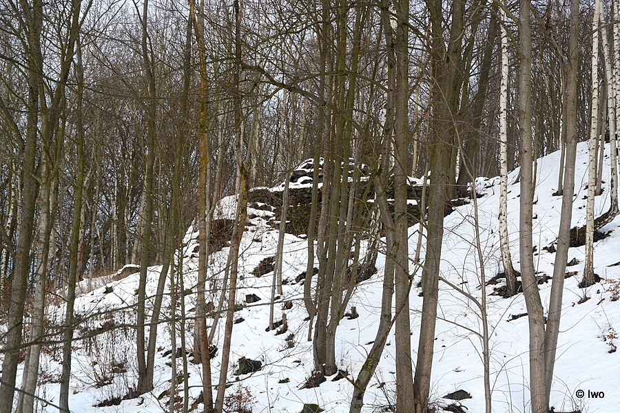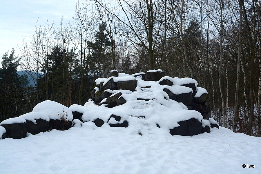 Na pěšinách mimo značené turistické trasy je na jihozápadním cípu vstupu do lomu hromada kamení a informační tabule. A také samozřejmě výhled.