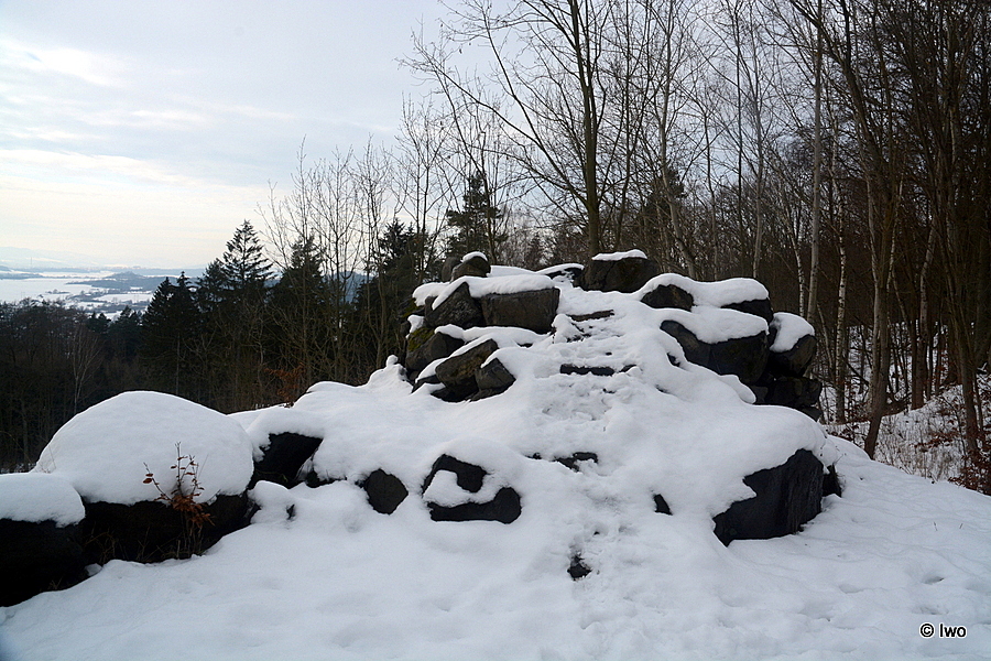 V roce 1902 zde byla obnovena kamenná, 7 metrů vysoká rozhledna – některé zdroje uvádějí výšku 5 metrů. Rozhledna měla obvod 17 metrů a byla z čedičových balvanů. Opatřena byla zábradlím. Ta původní, vybudovaná v roce 1885, byla v témže roce dvakrát za sebou zničena revírníkem Leanderem Prankem zaměstnaným u c.k. statků v Zákupech.