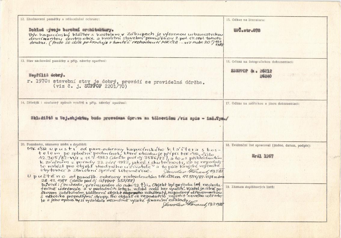 Původní evidenční list památky (bez záruky, strojopis není jasně čitelný):