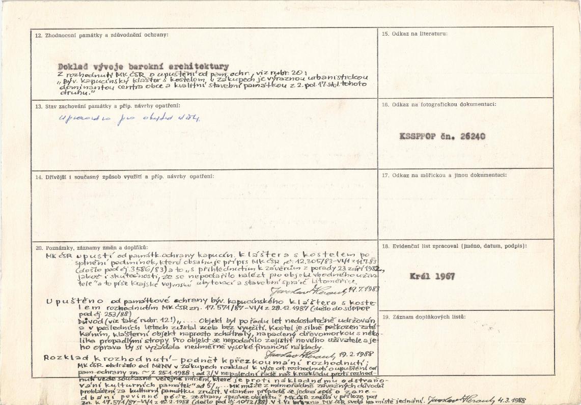 Původní evidenční list památky: