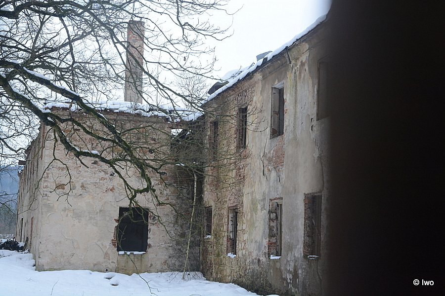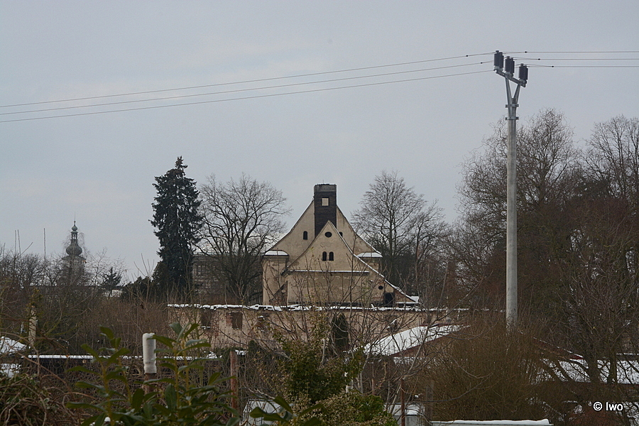 Na opačném břehu říčky Svitávky v Zákupech naproti zdejšímu zámku je za domy skryt pustnoucí klášterní areál.