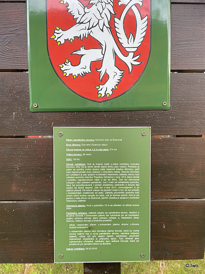 V parku v Tyršově ulici ve Šluknově roste u malého obnoveného pomníku Körnerův dub.