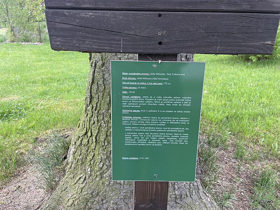 V parku v Tyršově ulici ve Šluknově se krom pomníku a Körnerova dubu nachází ještě další památný strom – jedle nikkoská.