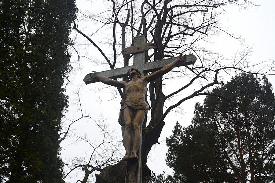 - Kříž na vstupní bráně na hřbitov v Opočně u Loun