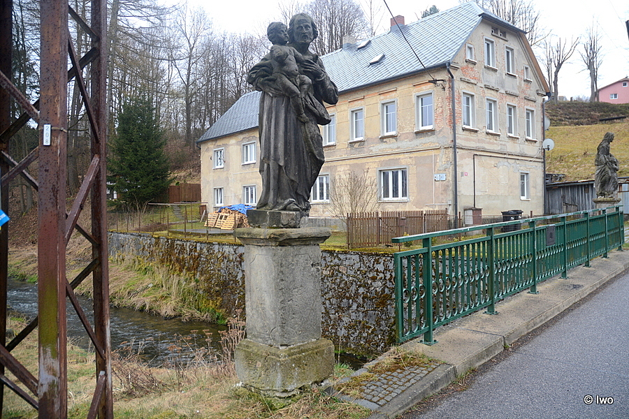 Sochy sv. Josefa a sv. Anny jsou umístěny na severní a jižní straně klenutého mostku postaveného roku 1744 přes Vilémovský potok. Byly součástí souboru čtyř soch, které mostek zdobily, autorem byl šenovský sochař Christian Riedl.