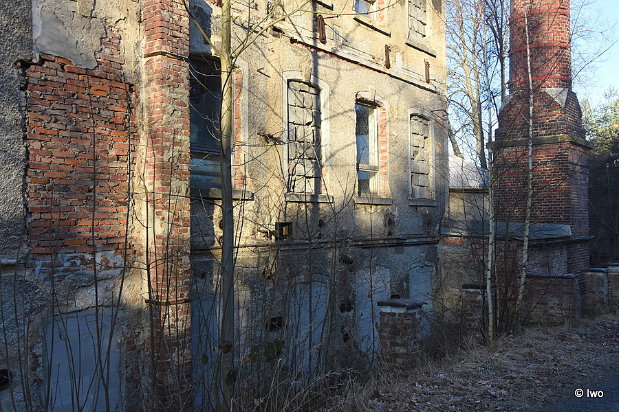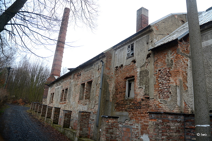 V jedné z postranních ulic v severní části Mikulášovic stojí pustnoucí tovární budova.