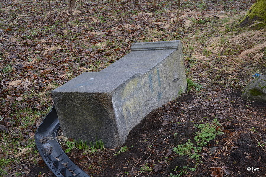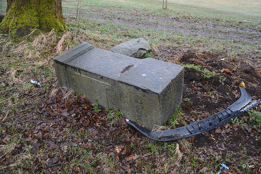 Dřík křížku je z velmi tvrdého materiálu, přežil tedy jak povalení, tak odlomení kříže.