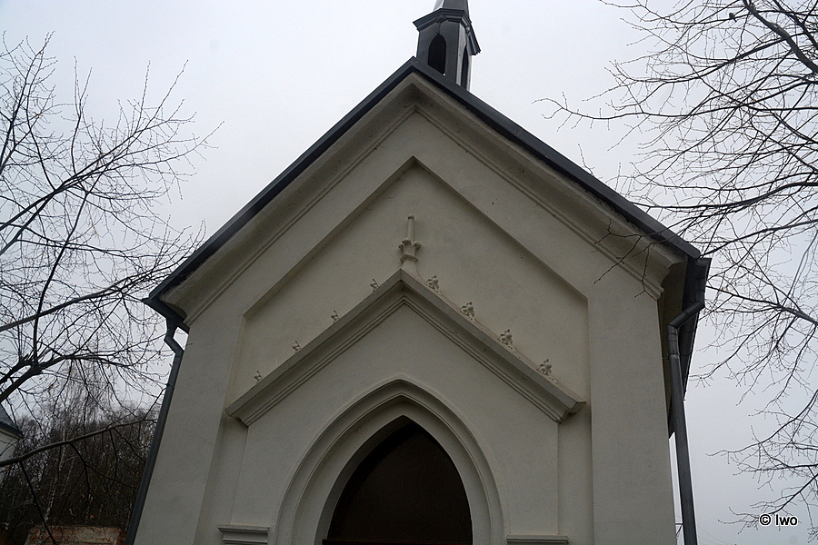 Je to jedna z větších kaplí. Na konci 19. st. byla kaple pseudogoticky upravena, z této doby pocházela pravděpodobně i bohatá výmalba vnitřních omítek. Dnes se z výmalby dochovalo jen málo, dříve byly nad okny a dveřmi biblické výjevy, dnes již jen oprýskané zdivo. Nad oltářem jsou ještě dnes vidět dvě postavy andělů. Kaple má obdélníkový půdorys s půlkruhovým závěrem. Ke vstupním dveřím vedou tři žulové schody. Kaple má čtyři okna, podlaha je z keramické dlažby s šachovnicovým šedo žlutým motivem. Po druhé světové válce se nenašlo dobrých lidí co by se o kapli postarali…