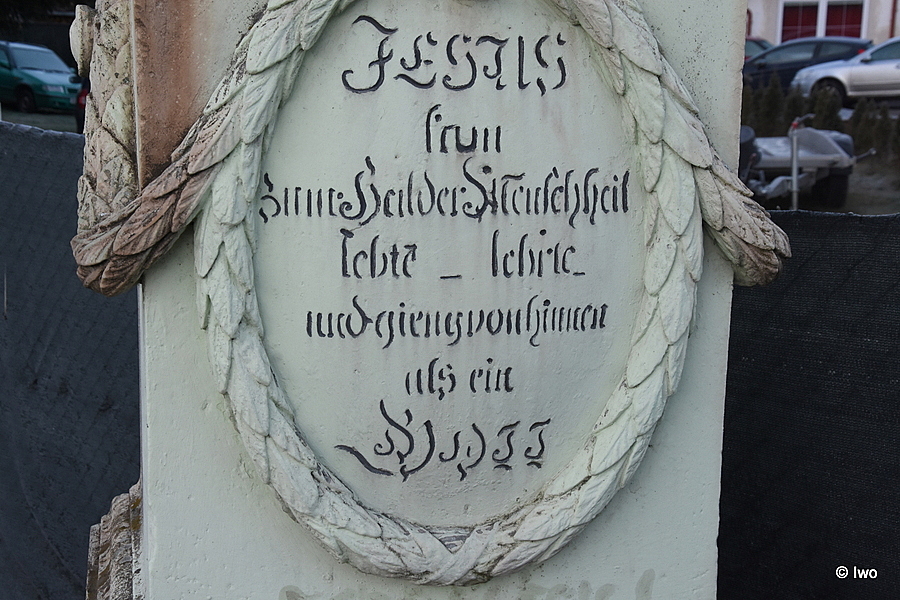 JESUS / ??? / zum Heil der Menschheit / lebte – lehrte – / und gieng von hinnen / als ein / GOTT