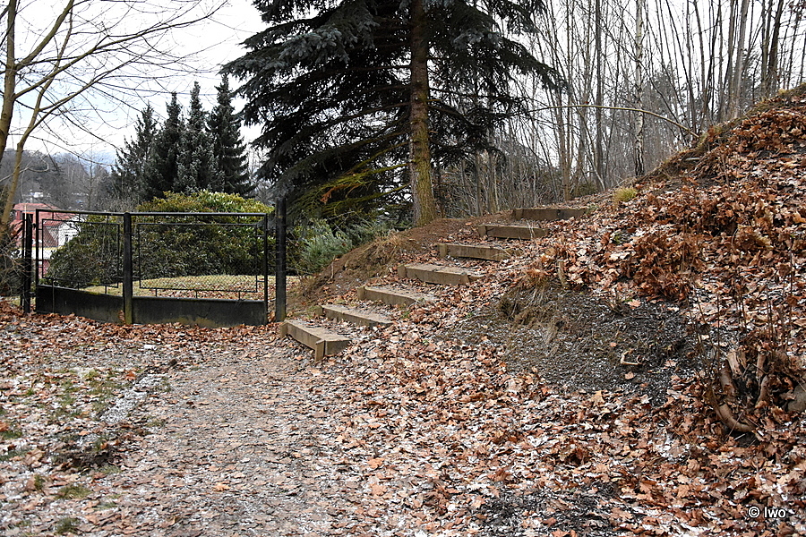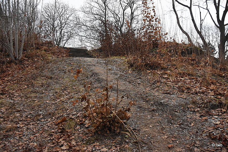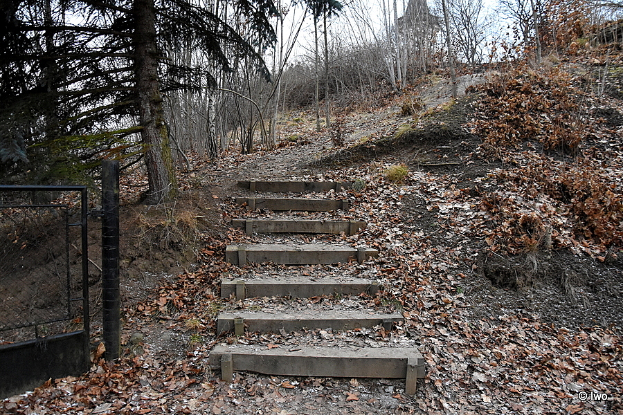 Pro nemístňáky asi nebude nejjednodušší najít přístupovou cestu ze zatáčky kolem brány soukromého pozemku. Pár schodů nahoru solidních, pak přírodní úsek – směrem vzhůru to docela šlo, ale při zpáteční cestě jsem přemýšlel, co bych dělal, kdyby zrovna tolik nasucho nemrzlo. Být bláto nebo sníh, nejspíš bych v tuhle chvíli měl rozbitou držku nebo zlomenou nějakou končetinu. Pak zase pár schodů a zbytek až k plošině vysypán drobným kamením. Na plošinu s lavičkou vedou po stranách pomocné schůdky. Když jsem k nim zvedal nohy, vzpomněl jsem si na své mládí a prastaré motoráky, kdy z kolejiště musel člověk předvádět takřka akrobatické výkony, aby dostal chodidlo do patřičné výše…
