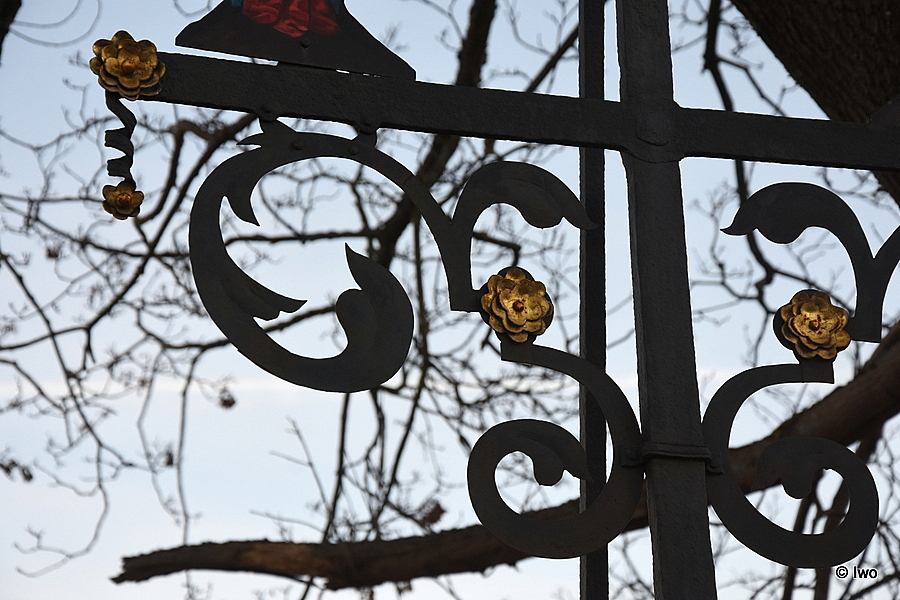 - Kříž na vstupní bráně na hřbitov v Opočně u Loun