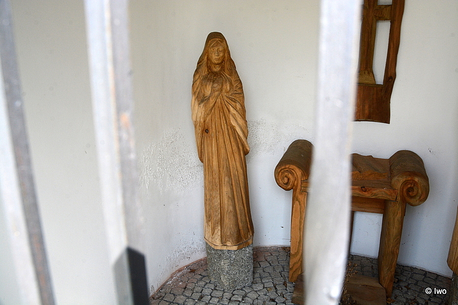 Kaple Matky Boží, v pořadí již třetí, byla znovu postavena na základě dochovaných fotografií. Stojí na obdélném půdorysu se segmentovým zakončením. V průčelí je vchod do kaple opatřený mřížemi, nad ním je ve štítu umístěna prázdná nika. Stěny jsou prosté, bez oken, členěné pouze úzkými bílými lizénami. Omítka je hrubá se žlutým nátěrem. Střecha bez věže je krytá břidlicí, okapy zdobí drobné chrliče. Podlaha je dlážděná žulovými kostkami, uprostřed je kříž z pálených cihel. Uvnitř kaple visí dřevěný krucifix s kovovým tělem Krista, na stropě je umístěn veliký dřevěný kříž.