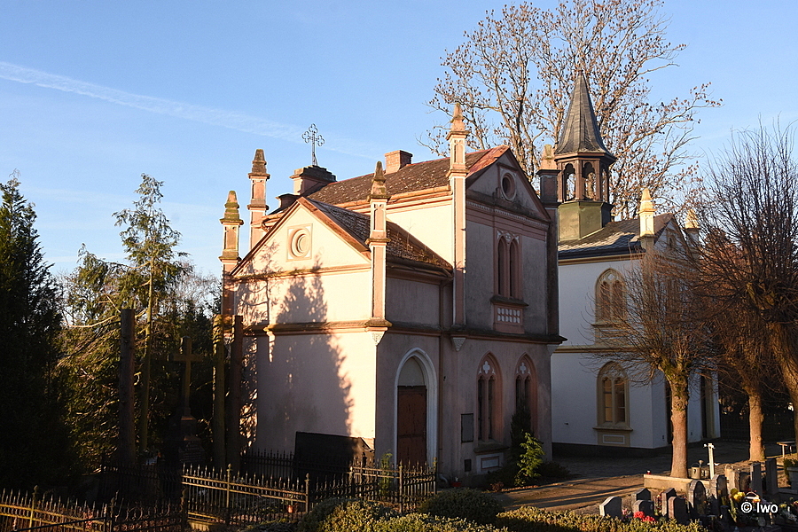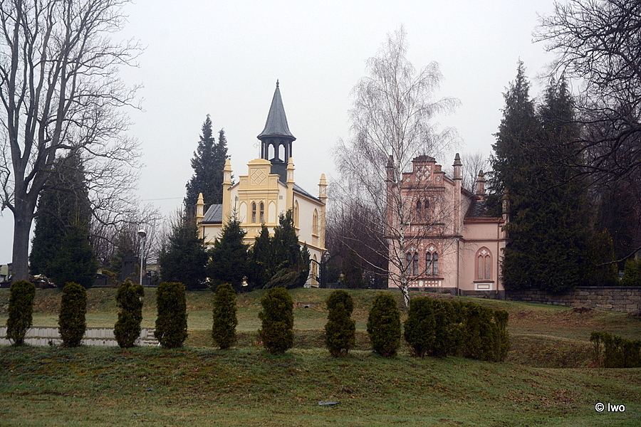 U vstupu do hřbitova vyrostl roku 1872 hřbitovní kostel s obytným prvním patrem a dům pro správce hřbitova.