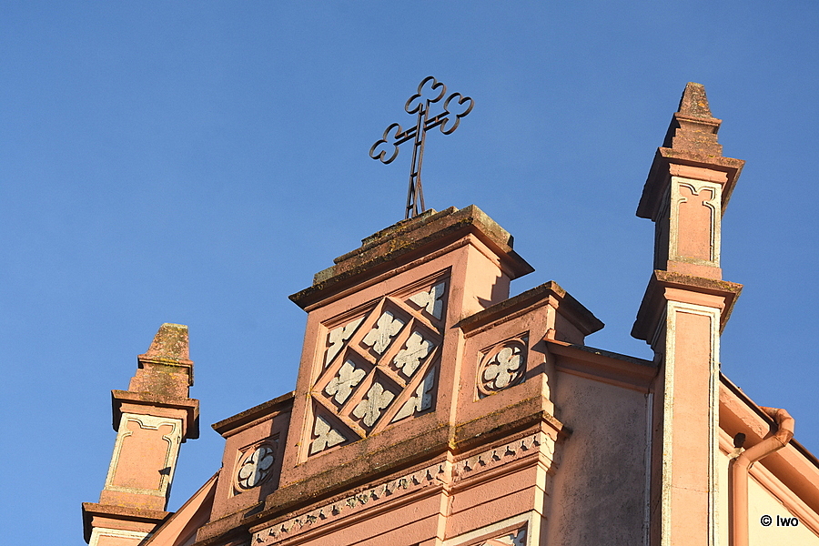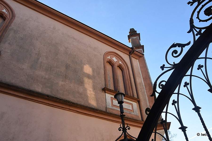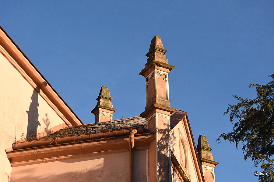 Zrcadlově nejen umístěním, ale i stavebně – byť je každá stavba jiné barvy, architektonicky mají stejný základ. Není mu ale věnováno tolik pozornosti, jako již zmíněnému kostelu.