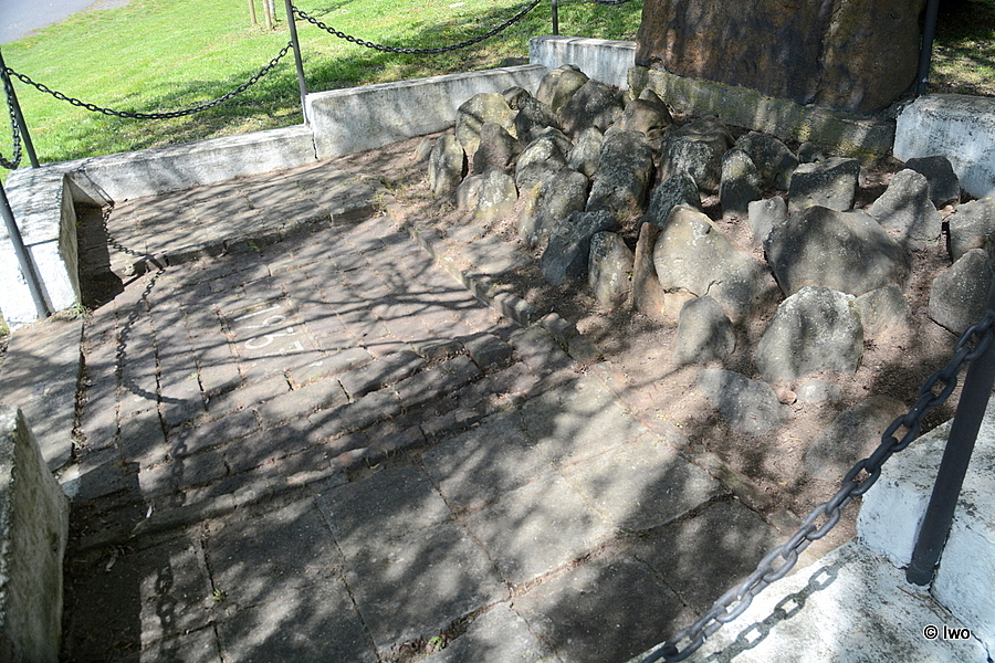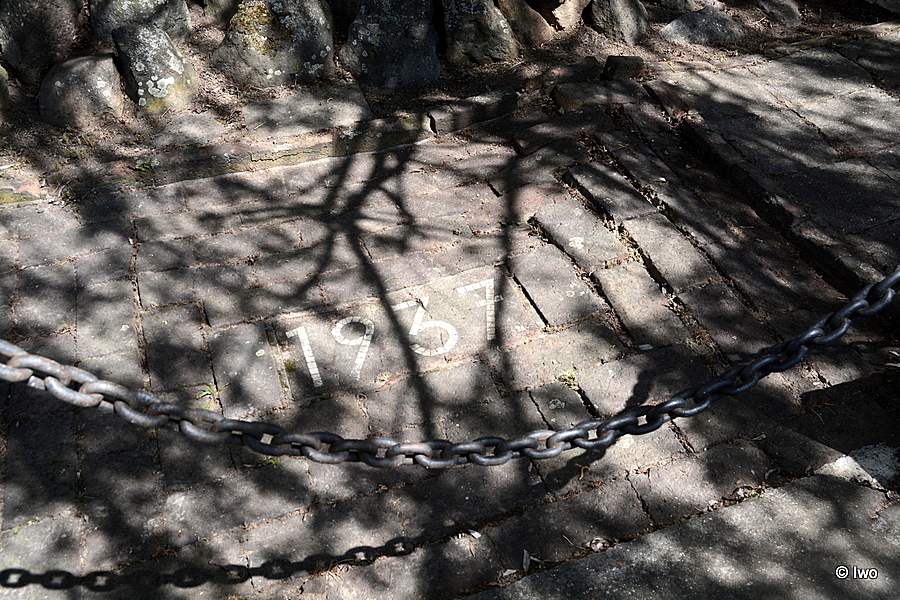 Od pohledu pod vzrostlým stromem ze řetězy umístěný monolit je modernizovanou verzí pomníku obětem Velké války.