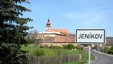 U silnice před kostelem svatých Petra a Pavla v Jeníkově stojí na nepůvodním místě socha svatého Jana Nepomuckého.