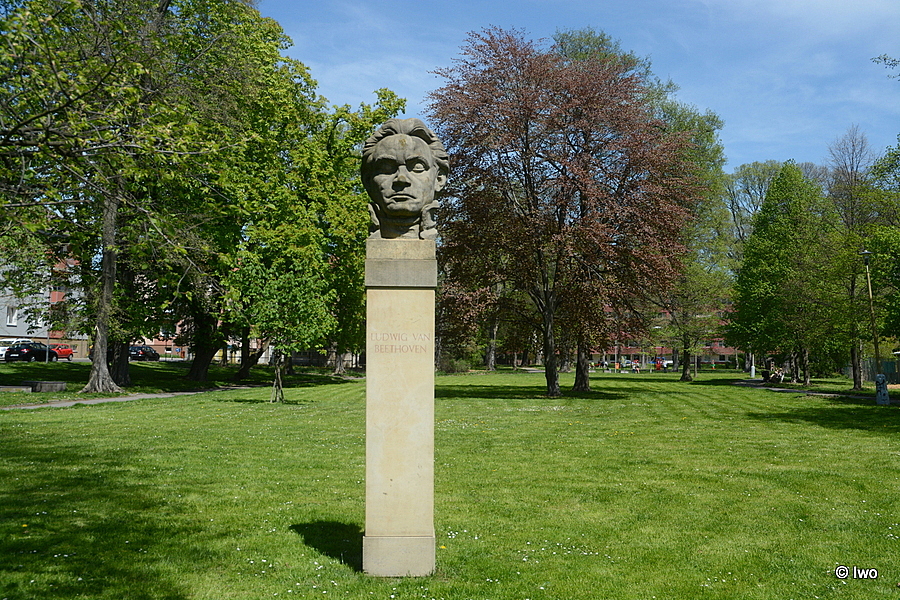 V sadech B. Smetany v Duchcově stojí u cesty dvojice pískovcových bust. Severněji je to busta Ludwiga van Beethovena.
