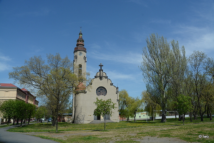 Evangelický kostel byl postaven drážďanskými architekty Rudolfem Schillingem a Juliem Willi Gräbnerem v secesním stylu. Kostel byl zřízen v rámci hnutí Pryč od Říma (německy Los-von-Rom-Bewegung), které mělo šířit protestantskou víru v tradičně katolických zemích. Stavba byla z velké části financována německými protestantskými spolky.