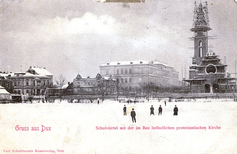 Mezi nejzajímavější ukázky ryze německé architektury v Duchcově patří Lutherův kostel, jehož výstavba pro místní rostoucí farnost evangelické církve augšpurského vyznání byla financována z darů německých protestantských spolků v rámci hnutí Los von Rom (Pryč od Říma), které si kladlo za cíl odklon německy mluvícího obyvatelstva od římskokatolické církve a jejich příklon k „velkoněmecké“ tradici protestantismu.