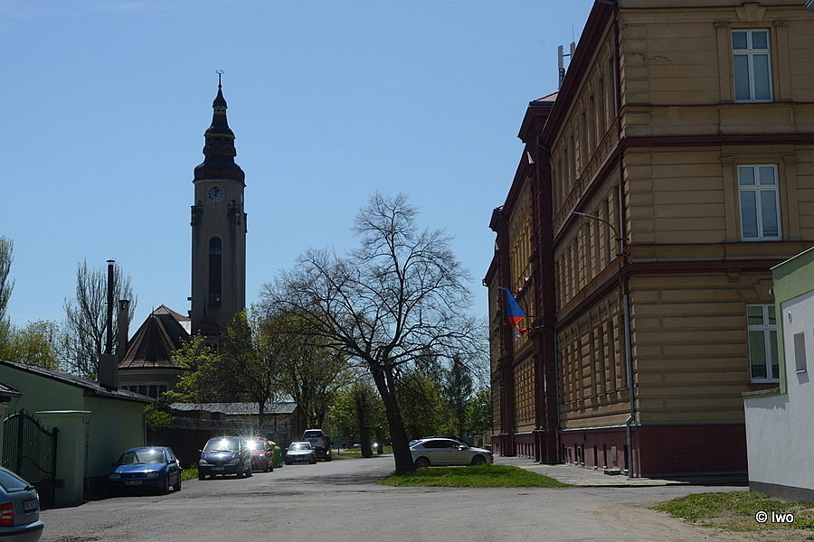 Na vrcholu věže byl původně umístěn motiv kohouta. Ten byl ale zničen povětrností. Následně zde byl umístěn symbol CČSH – kalich a kříž, který byl poškozen vichřicí a snesen 1. července 1985.