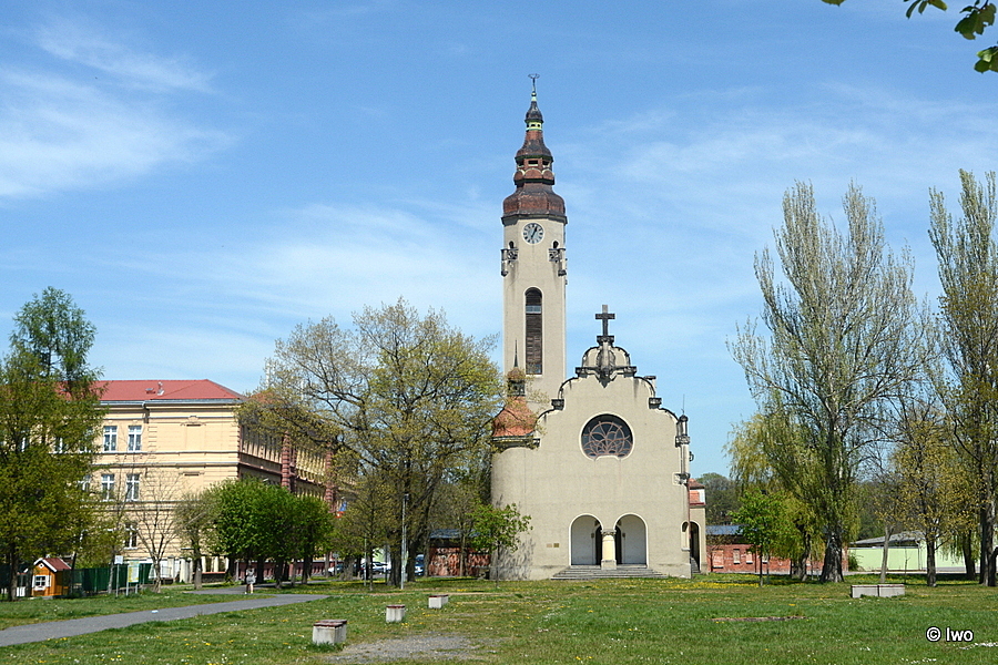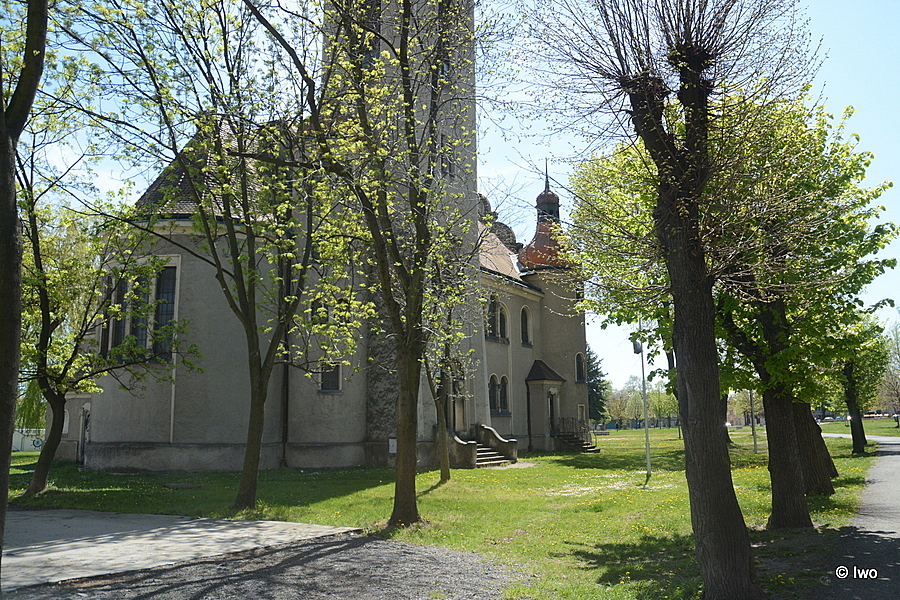 Evangelický kostel byl postaven drážďanskými architekty Rudolfem Schillingem a Juliem Willi Gräbnerem v secesním stylu. Kostel byl zřízen v rámci hnutí Pryč od Říma (německy Los-von-Rom-Bewegung), které mělo šířit protestantskou víru v tradičně katolických zemích. Stavba byla z velké části financována německými protestantskými spolky.