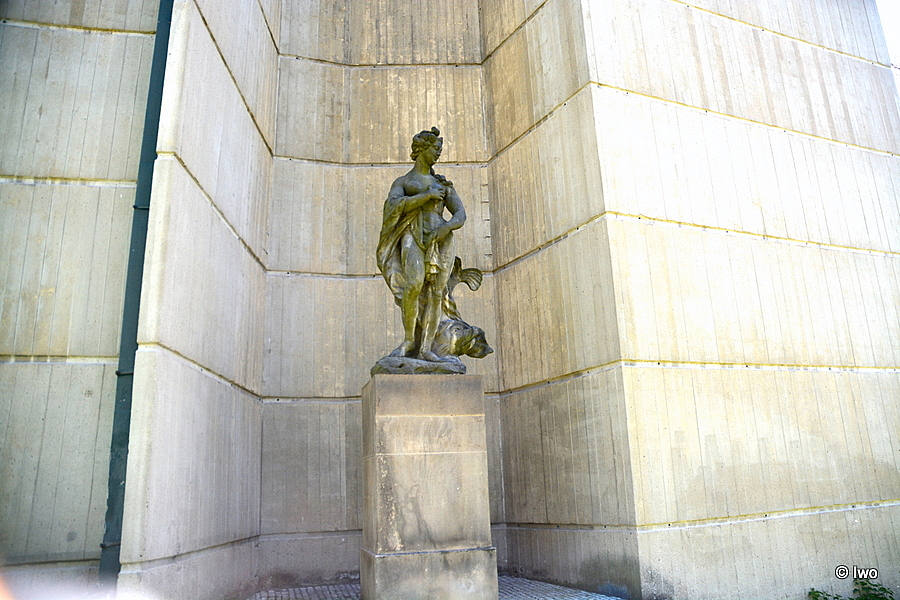 Pískovcová plastika stojící na vysokém kvádrovém podstavci, nacházející se ve výklenku Pavilonu pro Reinerovu fresku. Bohyně moří zpodobněna jako nahá žena, která si kusem látky zakrývá klín a pravou rukou poprsí. Za ní velká ryba se zdviženým ocasem.