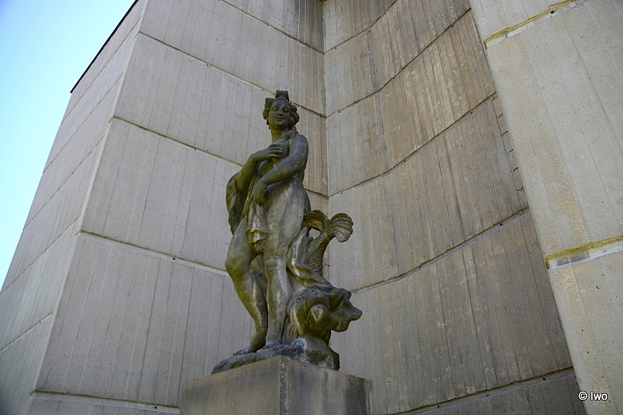 U nově postaveného pavilonu Reinerovy fresky v Duchcově je umístěna čtveřice soch – na severozápadní straně stojí Amfitrité.