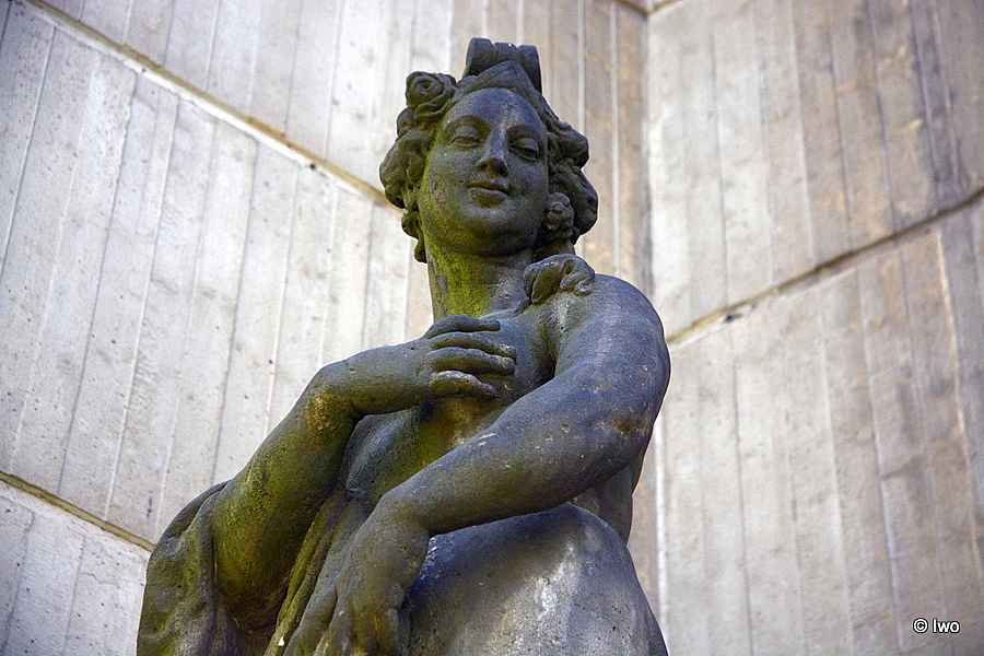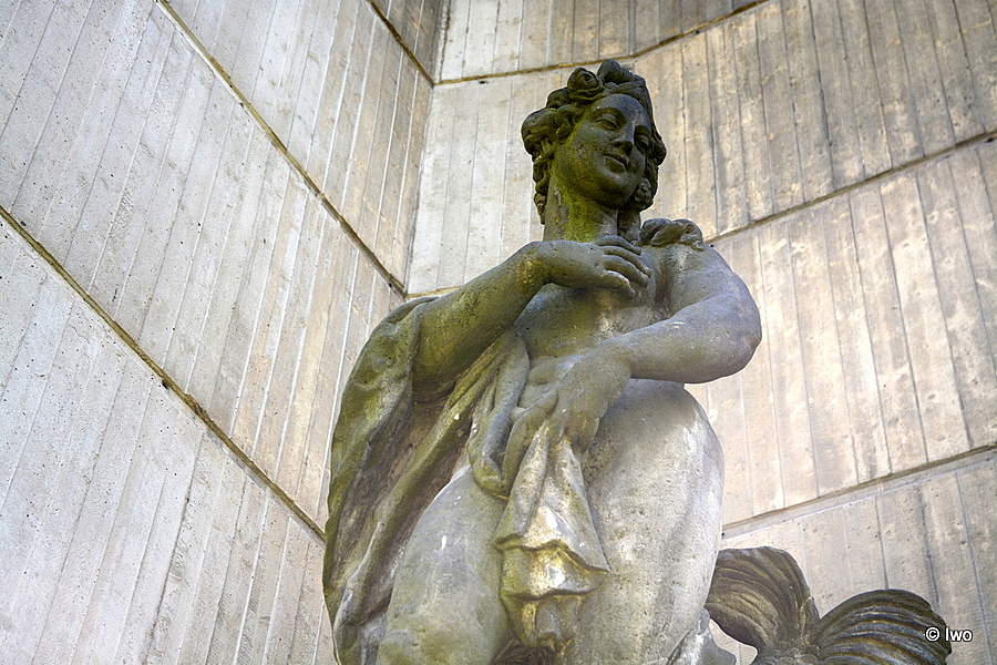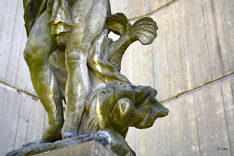 Pískovcová plastika stojící na vysokém kvádrovém podstavci, nacházející se ve výklenku Pavilonu pro Reinerovu fresku. Bohyně moří zpodobněna jako nahá žena, která si kusem látky zakrývá klín a pravou rukou poprsí. Za ní velká ryba se zdviženým ocasem.