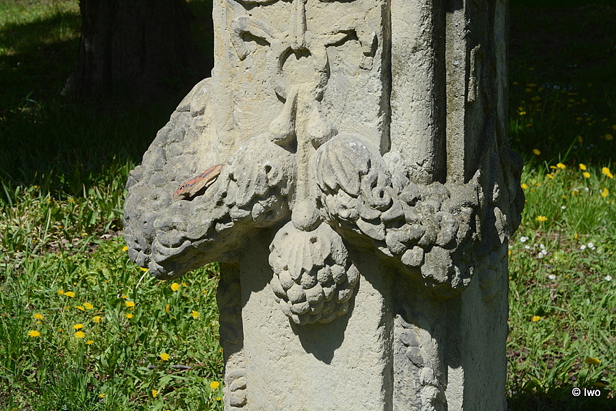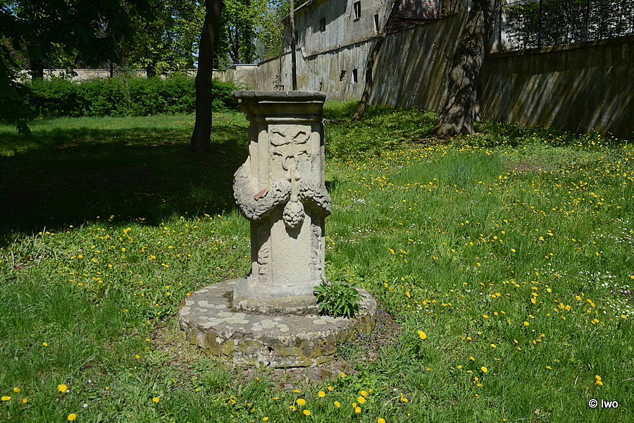 Ač je v Památkovém katalogu v areálu zámku evidována dlouhá řada položek, o tomto artefaktu jsem nenašel ani čárku. Snad jde o podstavec nějaké chybějící sochy.