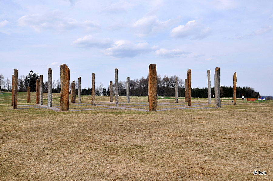 23. dubna 2016 – Ze země tu vyrůstá a k nebi ční dvaadvacet štíhlých žulových kamenů postavených do tvaru hvězdy. Jeden, který se jmenuje poutník, postává opodál.