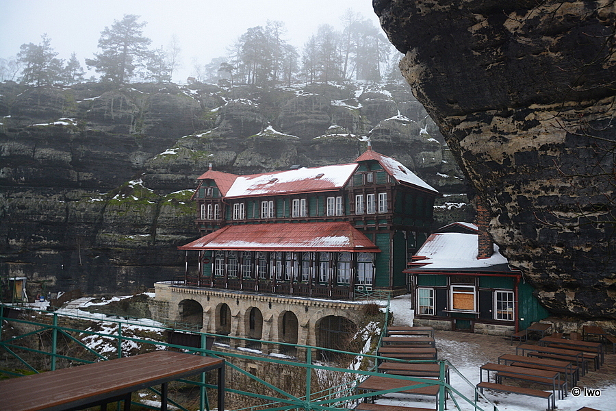 Neodmyslitelnou součástí areálu Pravčické brány je výletní zámeček Sokolí hnízdo.