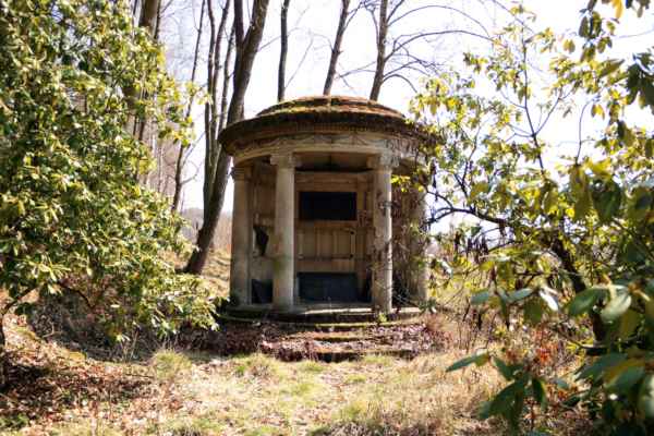 V zahradě Fuchsovy vily je i hrobka továrníka a jeho rodiny.