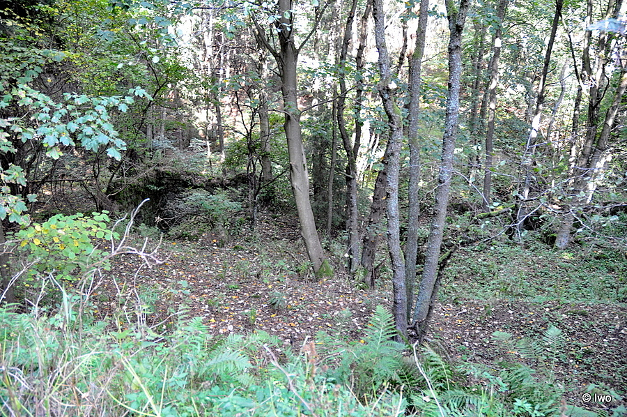 Uprostřed nicoty v lese na trase modré turistické značky poblíž viklanu Dominik jsou k vidění sporé zbytky Dolního Rábůva mlýna.