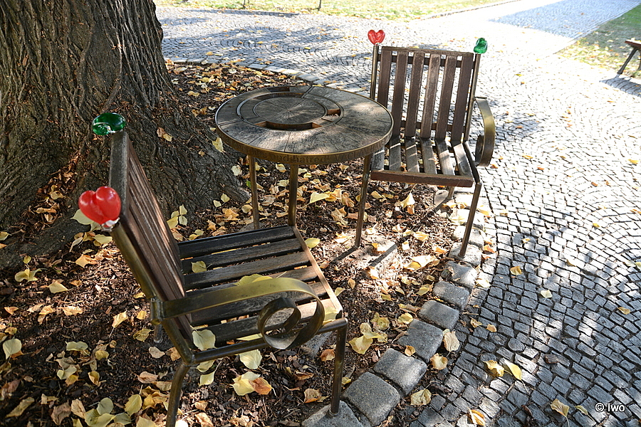 Idea rozpůlit lavičku, udělat z ní dvě židle, spojit je stolkem a tím bude prorůstat lípa vznikla při debatě architekta Bořka Šípka s Václavem Havlem.