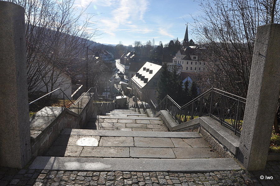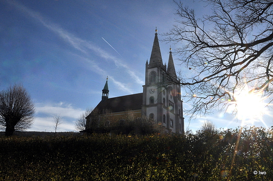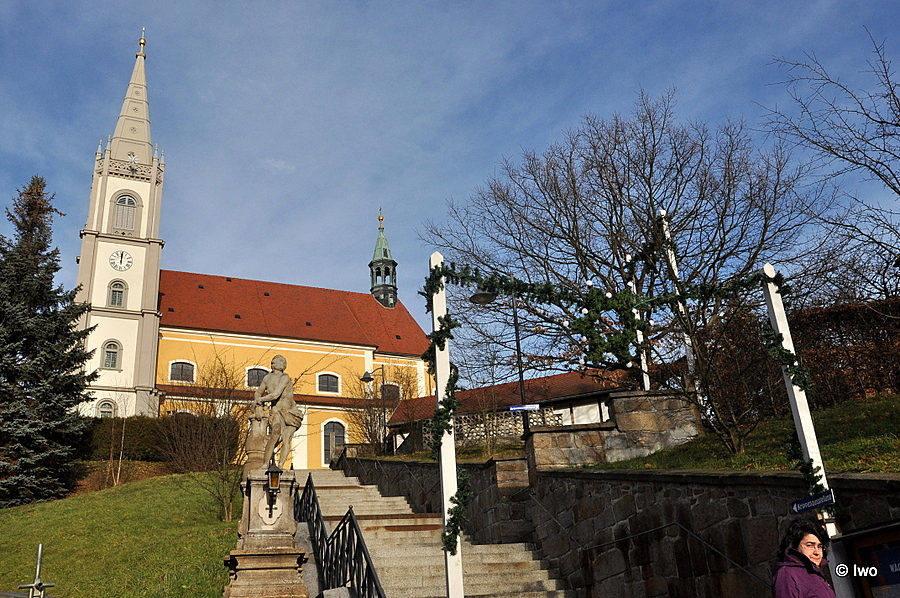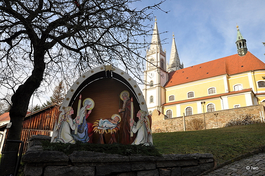 Po širokém, 64stupňovém schodišti se sedmi podestami a kolem barokní sochy Krista se dostanete do našeho katolického kostela, který byl postaven v letech 1735 až 1741 ve stylu českého venkovského baroka a od té doby utváří panoramu města.