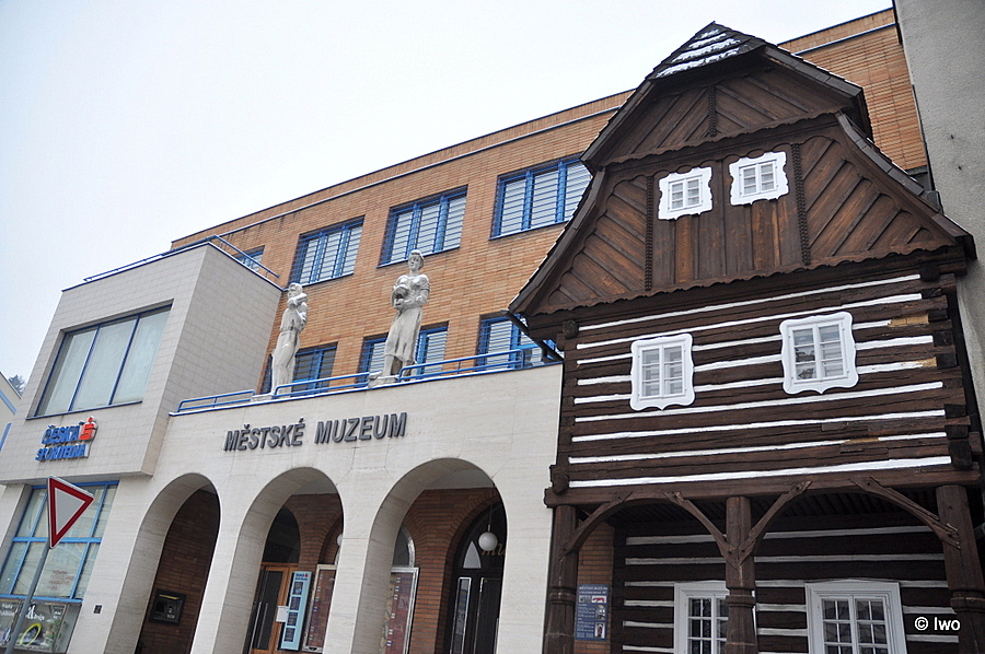 Štítové průčelí jednoho z nejstarších dochovaných dřevěných domů ve městě, tzv. Klemencovska bylo zakomponováno do novostavby spořitelny a muzea postavené mezi lety 1934-1936 podle návrhu Jindřicha Freiwalda a Jaroslava Böhma.
