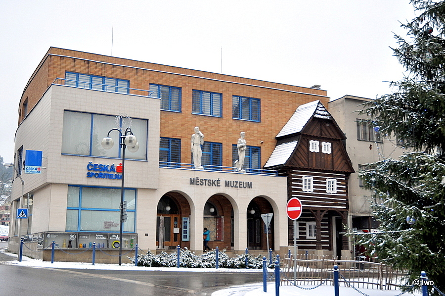 Štítové průčelí jednoho z nejstarších dochovaných dřevěných domů ve městě, tzv. Klemencovska bylo zakomponováno do novostavby spořitelny a muzea postavené mezi lety 1934-1936 podle návrhu Jindřicha Freiwalda a Jaroslava Böhma.