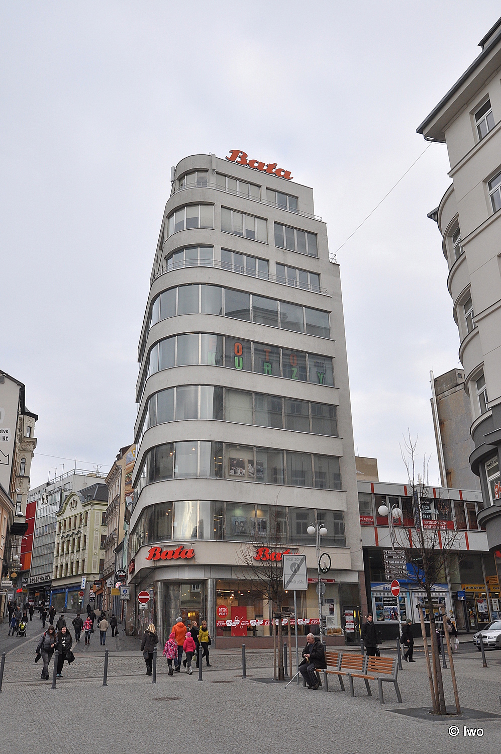 Od 30. let 20. století sloužila devítipatrová budova v centru Liberce účelu, kvůli kterému byla postavena; prodejně obuvi. Na její fasádě i na střeše se vyjímá červený nápis Baťa a právě obchod se stejnojmennou značkou tam fungoval i posledních 28 let. V únoru 2021 firma Baťa funkcionalistickou budovu opouští.