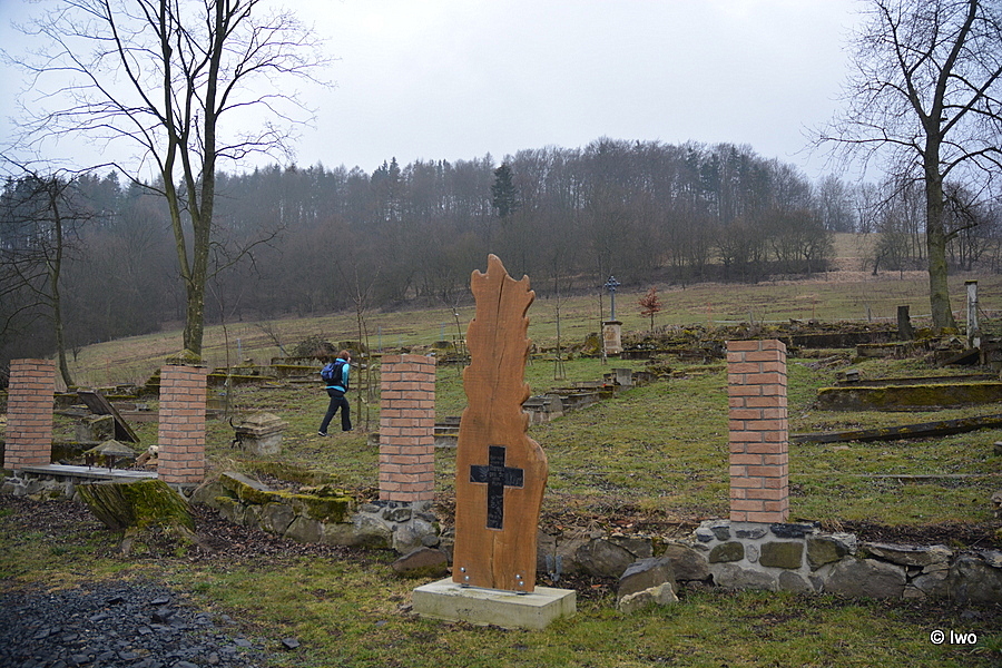 Na bývalém hřbitově v Horním Chlumu (část Děčína) stojí obnovený centrální kříž.