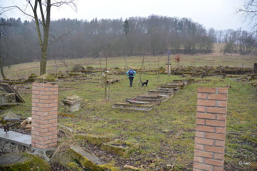 Ze hřbitova moc nezbylo – jen cihlové sloupky bez plotových polí a na ploše povalené a rozbité náhrobky. V horní části (jihozápadní strana) u pobořené zdi stojí opravený kříž.